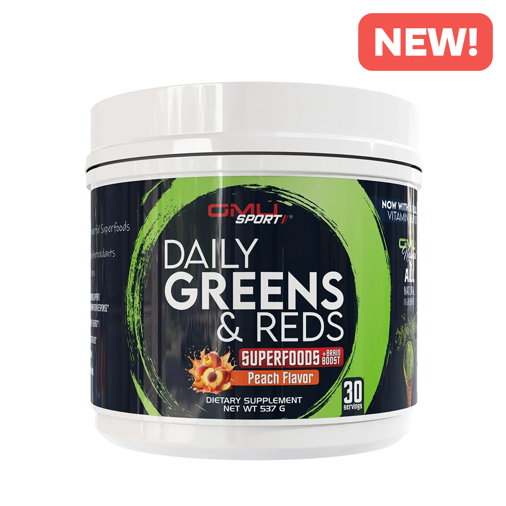 GMU Sport Daily Greens & Reds is a fully loaded superfood and vitamin complex built to fill nutritional gaps and elevate your daily wellness. Each scoop delivers 42 nutrient-dense superfoods, 21+ essential vitamins and minerals, antioxidants, probiotics, digestive enzymes, and adaptogens—creating one of the most complete all-in-one daily formulas available.